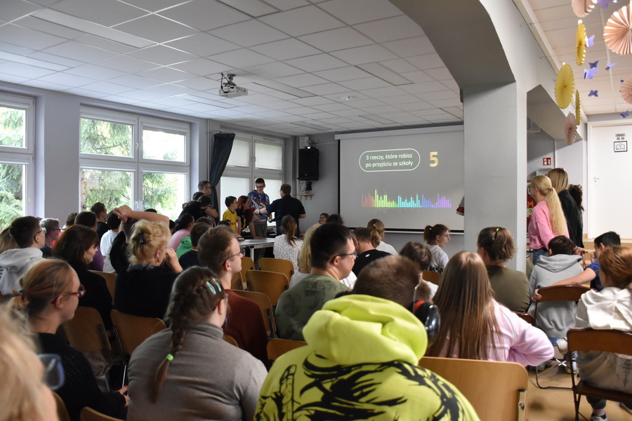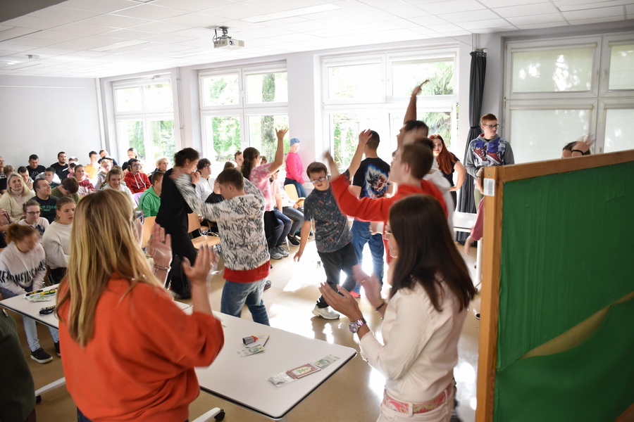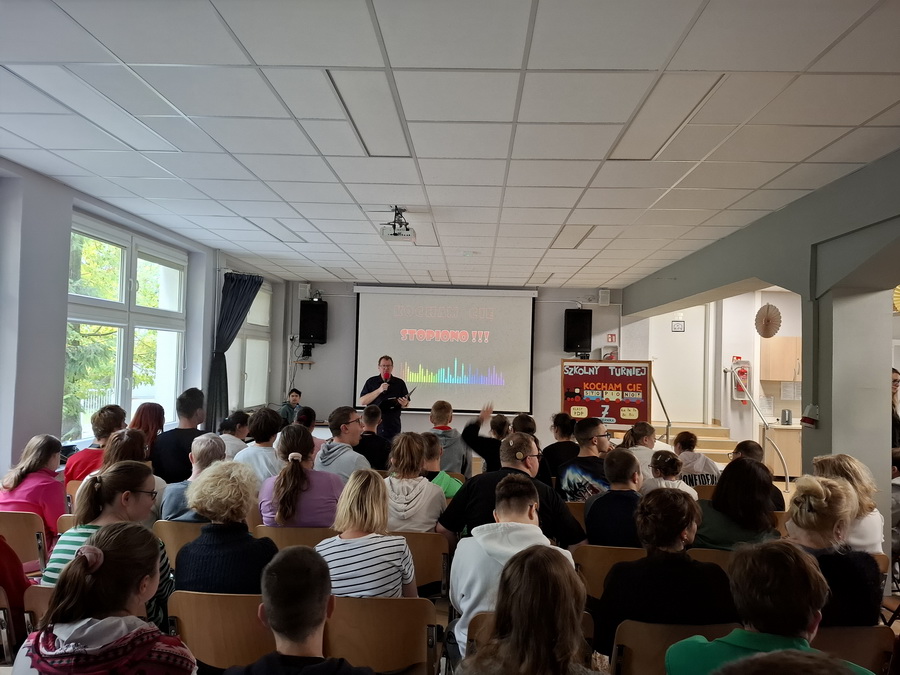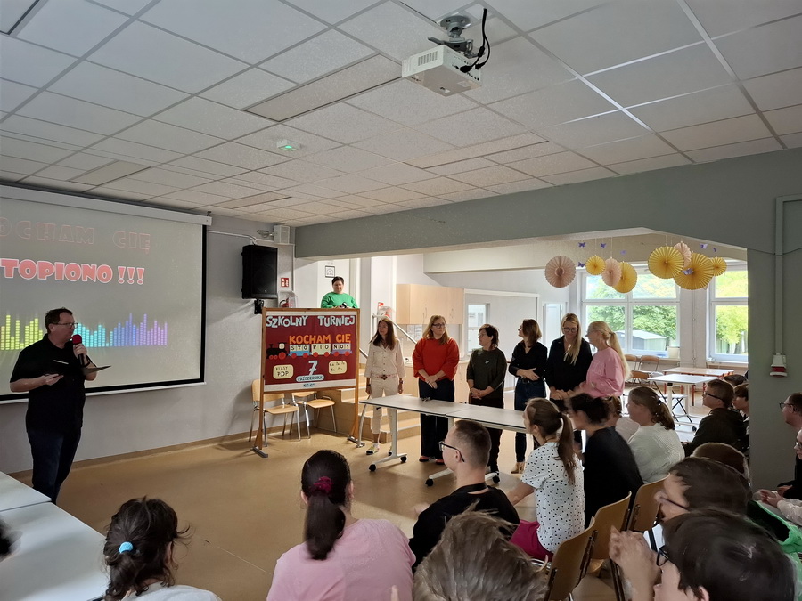 W miniony wtorek w naszej szkole zainaugurowaliśmy obchody zbliżającego się Dnia Edukacji Narodowej. Uczniowie i nauczyciele wzięli udział w szkolnym turnieju multimedialnym pt. „Kocham Cię Stopiono!”. Przy aktywnym wsparciu publiczności drużyny uczniów i nauczycieli mierzyły się z różnymi pytaniami i zadaniami związanymi z naszą szkołą. Tego dnia królował śmiech i dobra zabawa, a różnorodne konkurencje sprzyjały wzajemnej integracji.